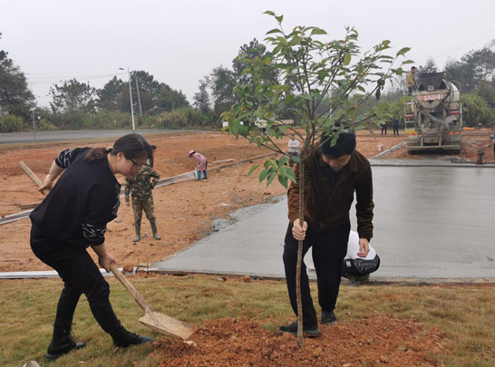 活動中,市政集團員工積極參與,勞動情趣高漲,大家手持鐵鍬,干勁十足,將一顆顆充滿生機和希望的櫻花樹苗植入坑內(nèi),樹苗種下后,大家又為它們澆灌生命之水,看著自己親手種下的樹苗在微風中搖曳,全體人員無一不露出幸福的笑容,并爭相站在小樹苗旁進行合影留念。