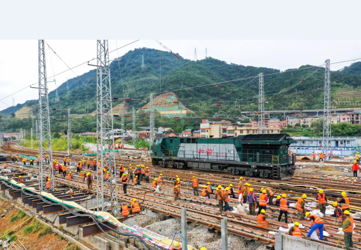 近日,新羅區(qū)城東片區(qū)東外環(huán)下穿漳龍、南龍鐵路框涵工程正式開(kāi)工。施工現(xiàn)場(chǎng),工人們正在對(duì)路基縱橫梁進(jìn)行加固,而在施工的過(guò)程中,營(yíng)運(yùn)列車也正常通行。